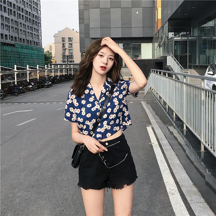 Ls1072 Ao Sơ Mi Họa Tiết Croptop Thời Trang Trẻ