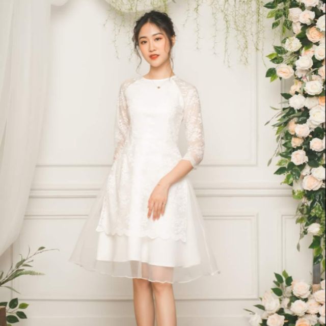 Ao Dai Cach Tan Nữ Ren Trắng Kem Chan Vay Sieu Xinh Shopee Việt Nam