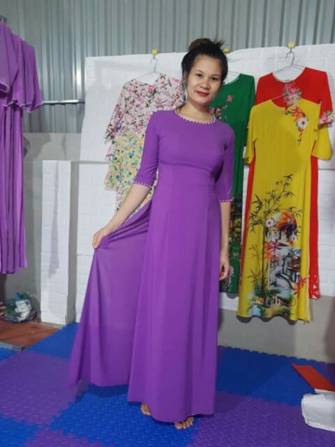 Ao Dai Truyền Thống Trơn Mau Tim Gồm Quần đen Shopee Việt Nam
