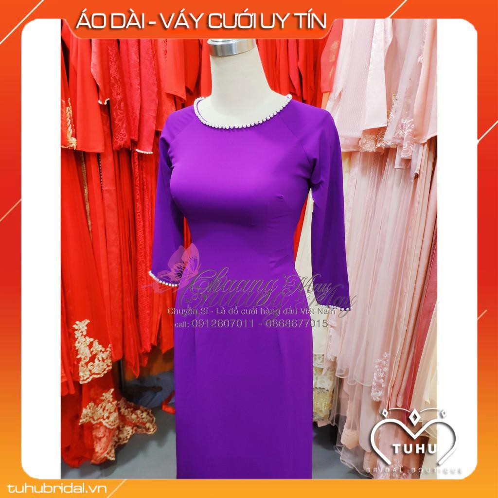 Ao Dai Mau Tim Huế Vẽ Co Vang đinh Cườm