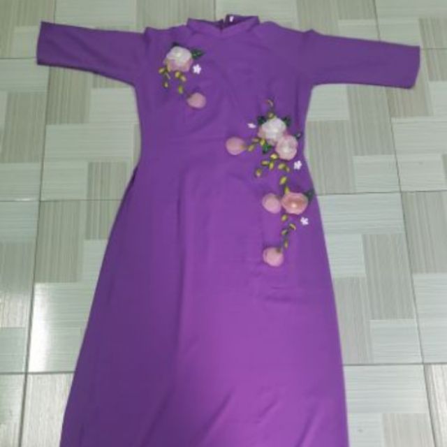 Thanh Ly Ao Dai Truyền Thống Tim Huế đinh Hoa Theu Nổi Giảm Chỉ Con 380 000 đ