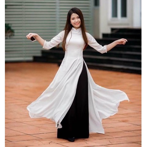 Freeship 99k Tq Bộ Ao Dai Lụa Trắng Quần Satin đen Shopee Việt Nam