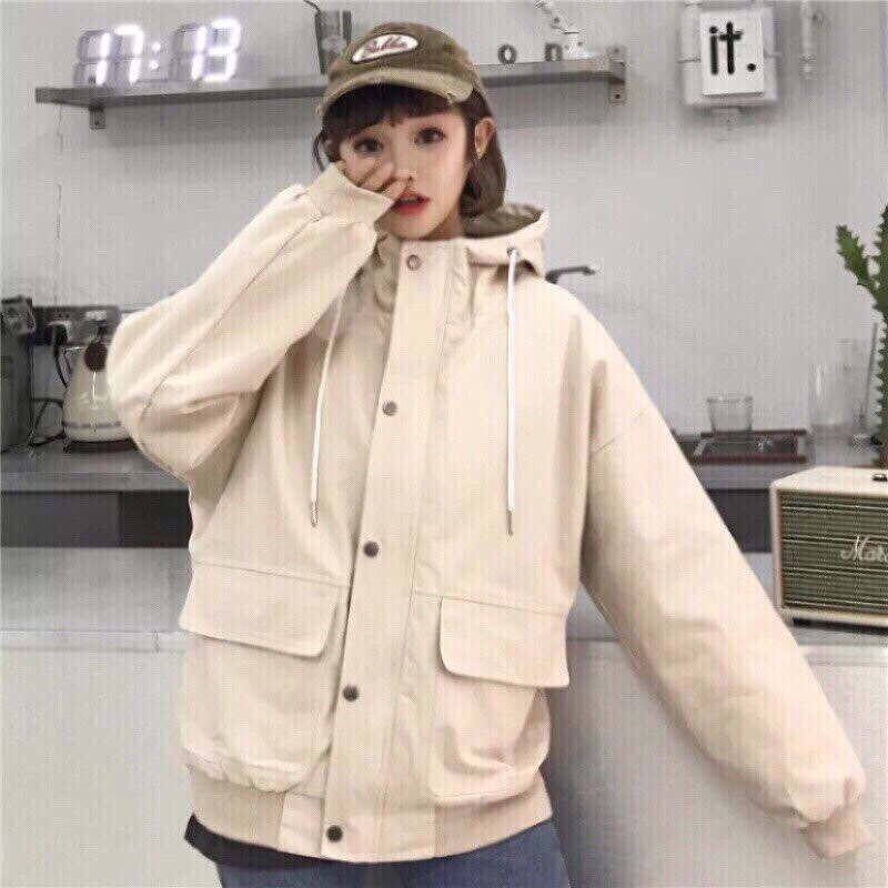 Mới Nhất Ban Chạy Ao Khoac Kaki Nữ Mau Vang Co Non 2 Tui Hộp Thời Trang Ao Khoat Nữ Form Rộng Phong Cach Han Quốc Shopee Việt Nam