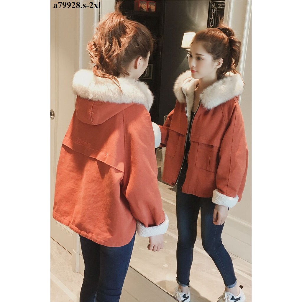 Ao Khoac Kaki Nữ Trẻ Trung Dang Ngắn Lot Long Co Mũ Long Cực Xinh Giảm Chỉ Con 390 000 đ