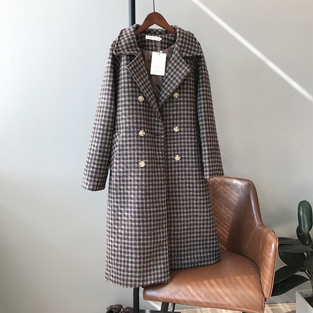 Ao Khoac Dạ Nữ Dang Dai Kẻ Caro Phien Bản Han Quốc Mới Ao Choang Thu đong Shopee Việt Nam