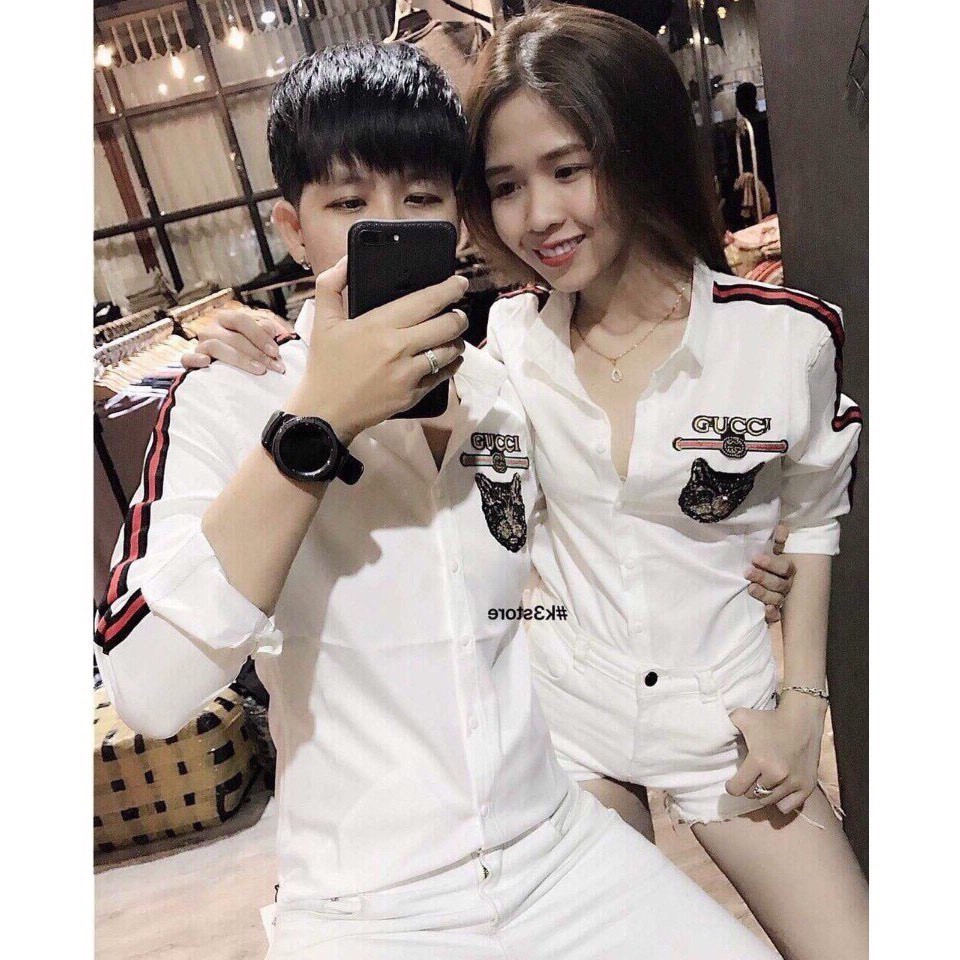 Ao Sơ Mi Trắng Cặp đoi Nam Nữ Sơ Mi Cặp Logo Gusi Gia 1 Ao Shopee Việt Nam