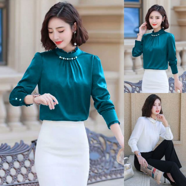 Sieu đẹp Ao Sơ Mi Nữ Cong Sở Kiểu Tay Dai Cổ Beo 2 La Vải Tơ Nhung Cao Cấp Mềm Mịn Mat Em Shopee Việt Nam