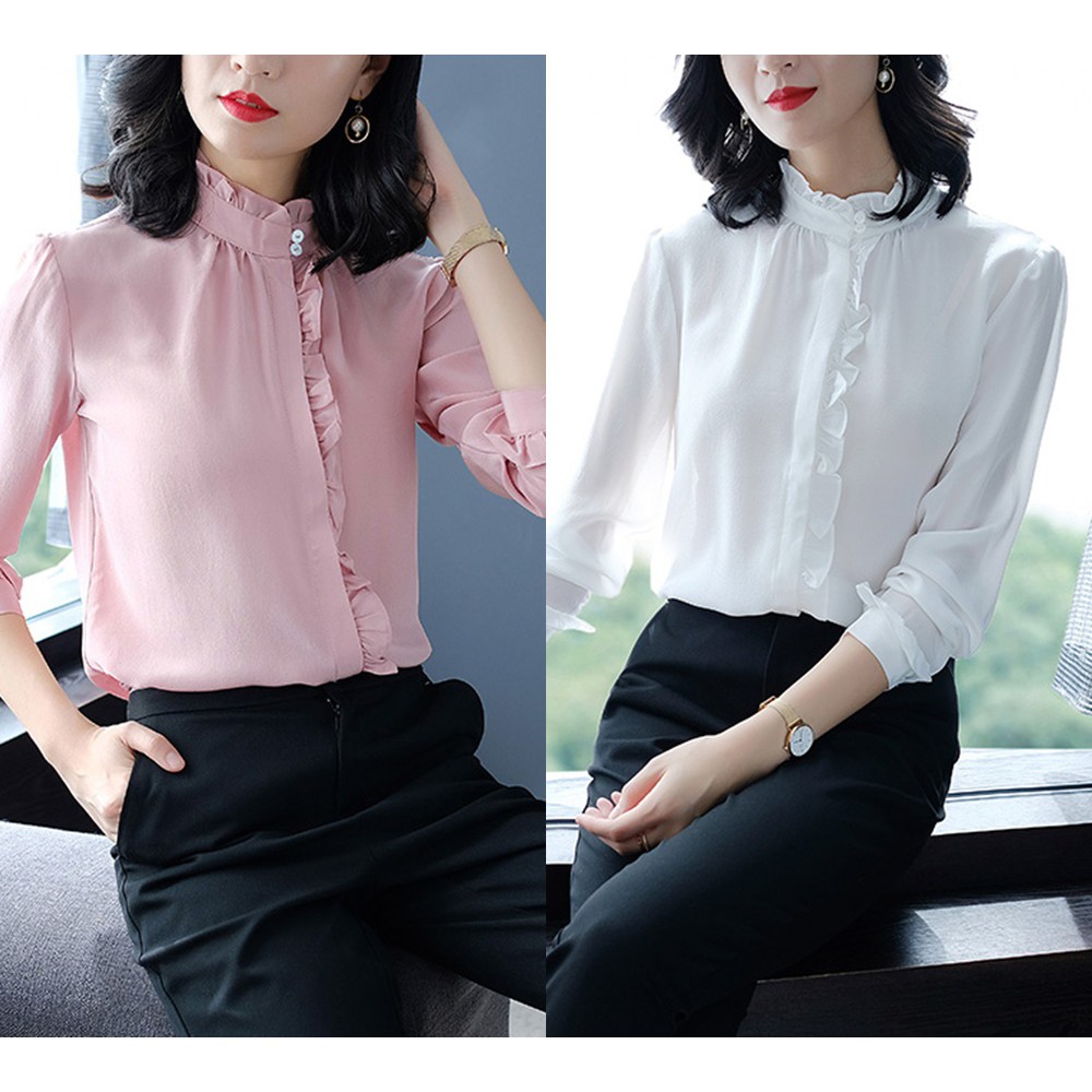 Ao Sơ Mi Nữ Kiểu Cổ Trụ Nẹp Tron Hng Shopee Việt Nam