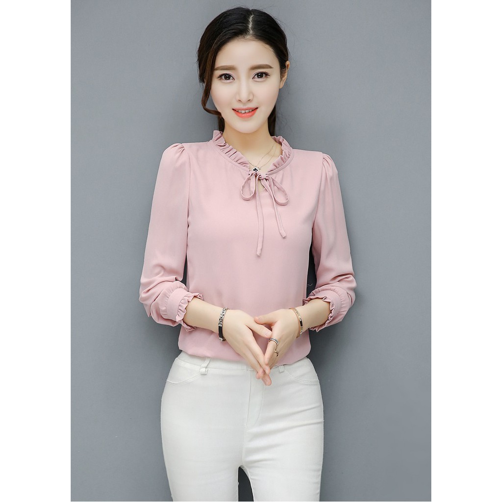 Sm019 Ao Sơ Mi Nữ Kiểu Cổ Tron Tay Dai Buộc Nơ Thời Trang Phong Cach điệu đa Cong Sở Thanh Lịch Banh Beo Hot Trend 2019 Shopee Việt Nam