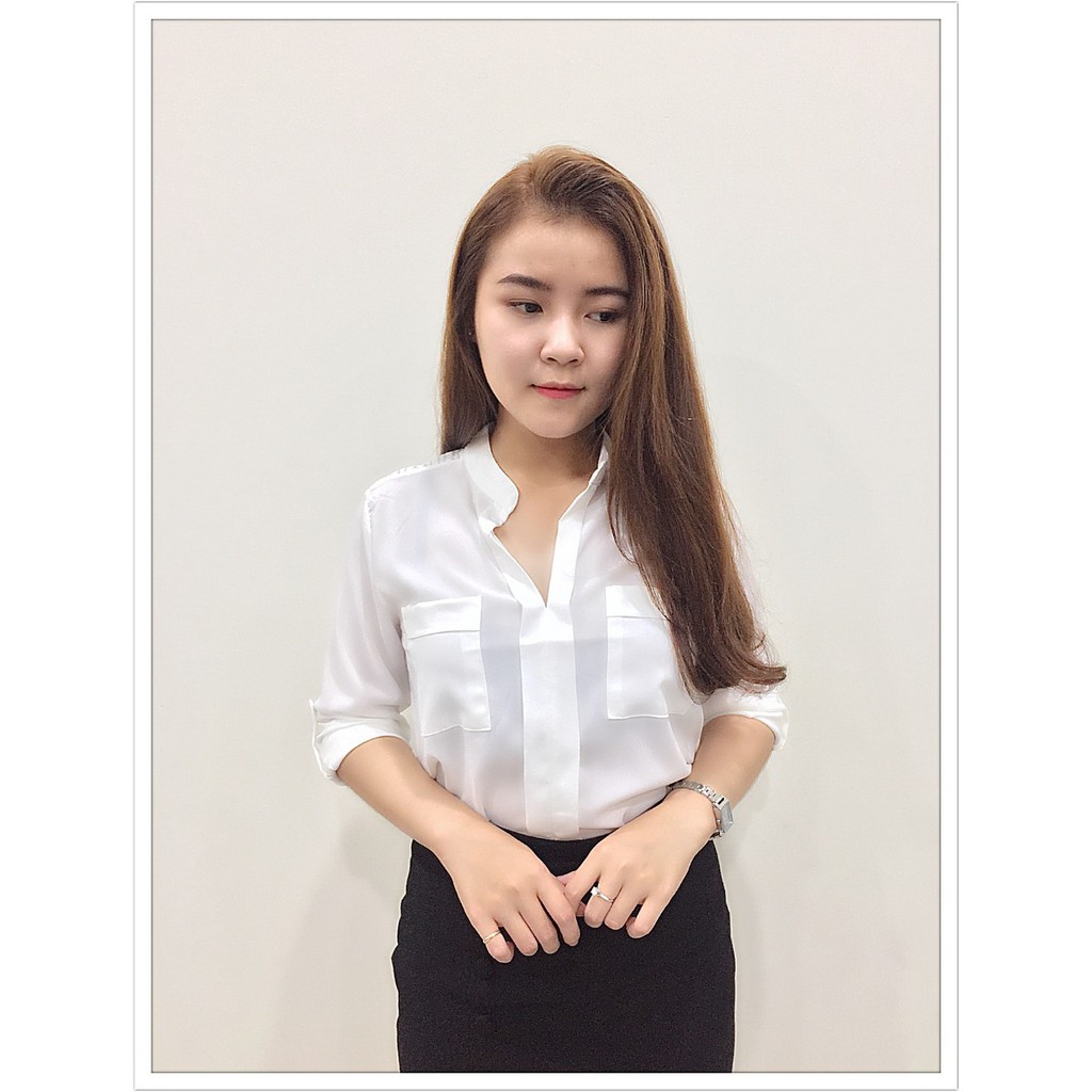 Ao Sơ Mi Nữ Cổ Trụ đinh Nut Tay Dai Cach điệu Cực Hot Hang đẹp Với Gia Tốt Nhất