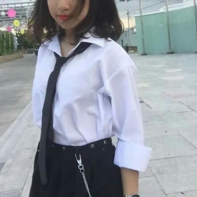 Ao Sơ Mi Nữ Form Rộng Thụng Tay Lỡ Mau Trắng Co Ca Vạt Chất đẹp Kiểu Dang Han Quốc Dễ Thương Trẻ Trung Ca Tinh Tiki Vn