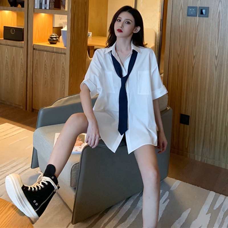 Ao Sơ Mi Nữ Form Rộng Thụng Tay Lỡ Mau Trắng Co Ca Vạt Chất đẹp Kiểu Dang Han Quốc Dễ Thương Trẻ Trung Ca Tinh Tiki Vn