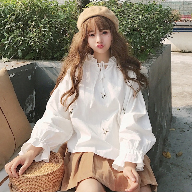 Sẵn Sơ Mi Ulzzang Ao Sơ Mi Nữ Kiểu Dang Han Quốc Sơ Mi Trắng Tay Bồng Shopee Việt Nam
