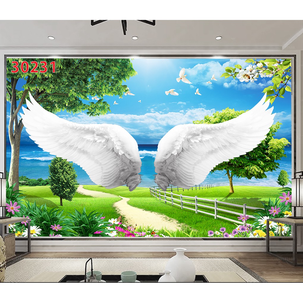 Tranh Dan Tường 3d đoi Canh Thien Thần đa Tich Hợp Sẵn Keo 231 Giảm Chỉ Con 119 000 đ