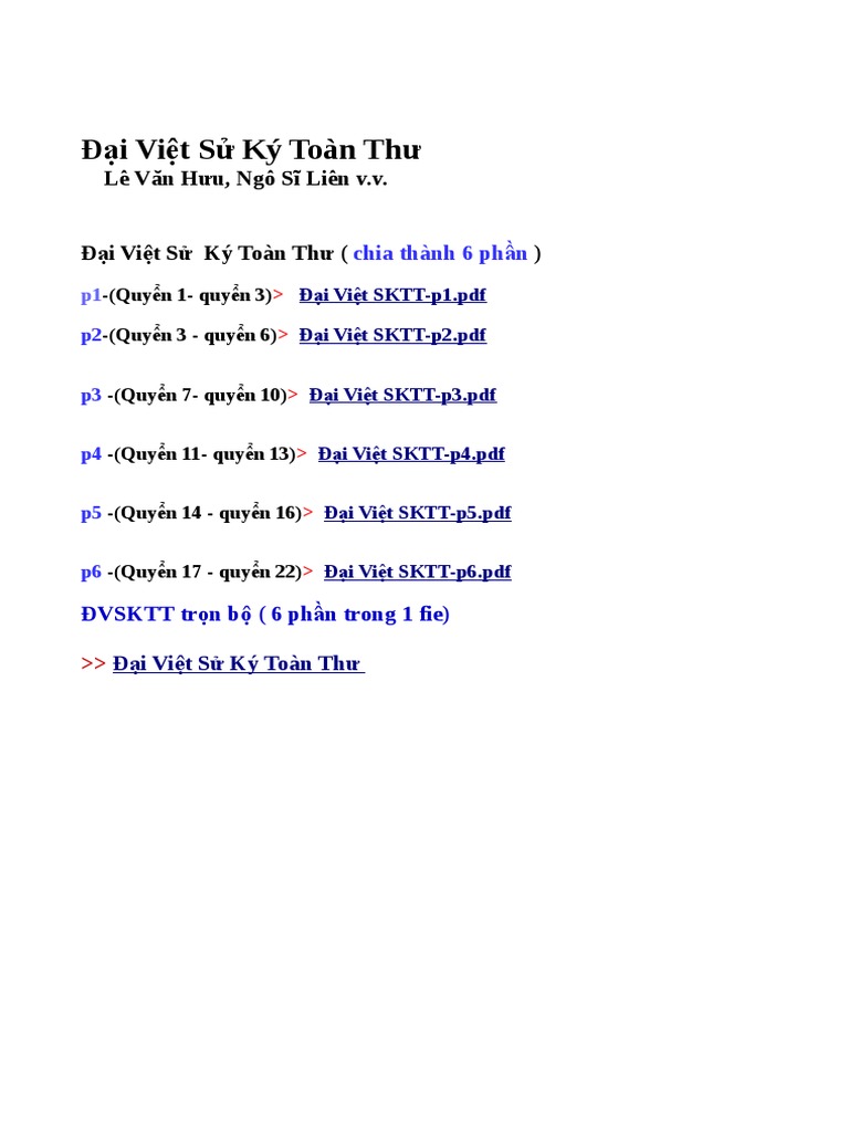 ɗâːjˀ vìət ʂɨ kǐ twâːn tʰɨ complete annals of đại việt is the official historical text of the lê dynasty that was originally compiled by the royal historian ngô sĩ liên under the order of the emperor lê thánh tông and was finished in 1479. Tiếng việt định dạng. đại việt sử ký toàn thư. Lê văn hưu phan phu tiên ngô sĩ liên soạn thảo 1272 1697.