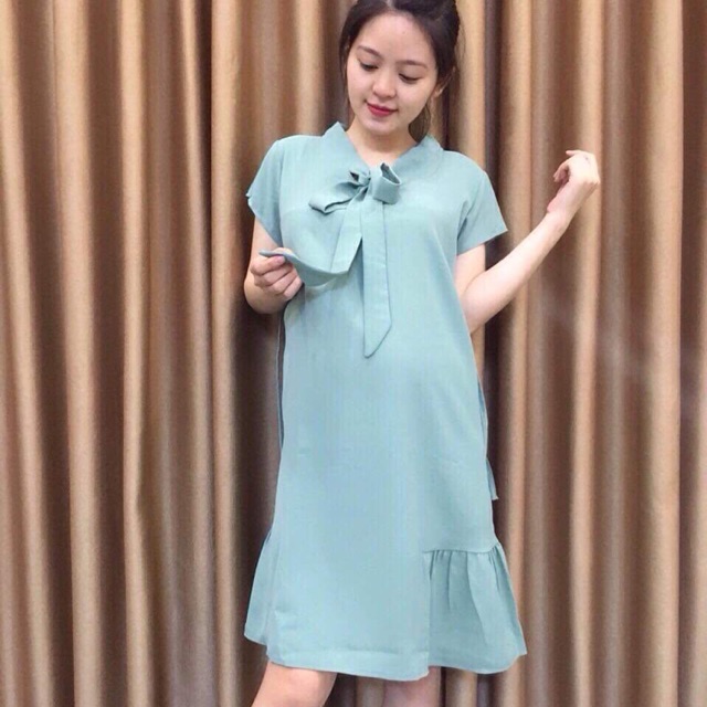 đầm Bầu Suong Vb10 Xanh Nơ Shop Bầu đẹp đồ Bầu Cong Sở