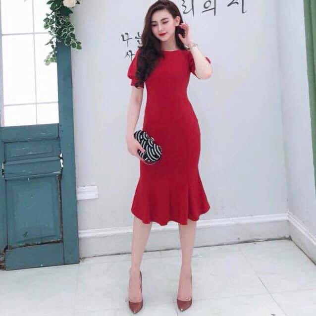 đầm Om Body Dự Tiệc Hai Day Trễ Vai Sang Trọng Mau đỏ