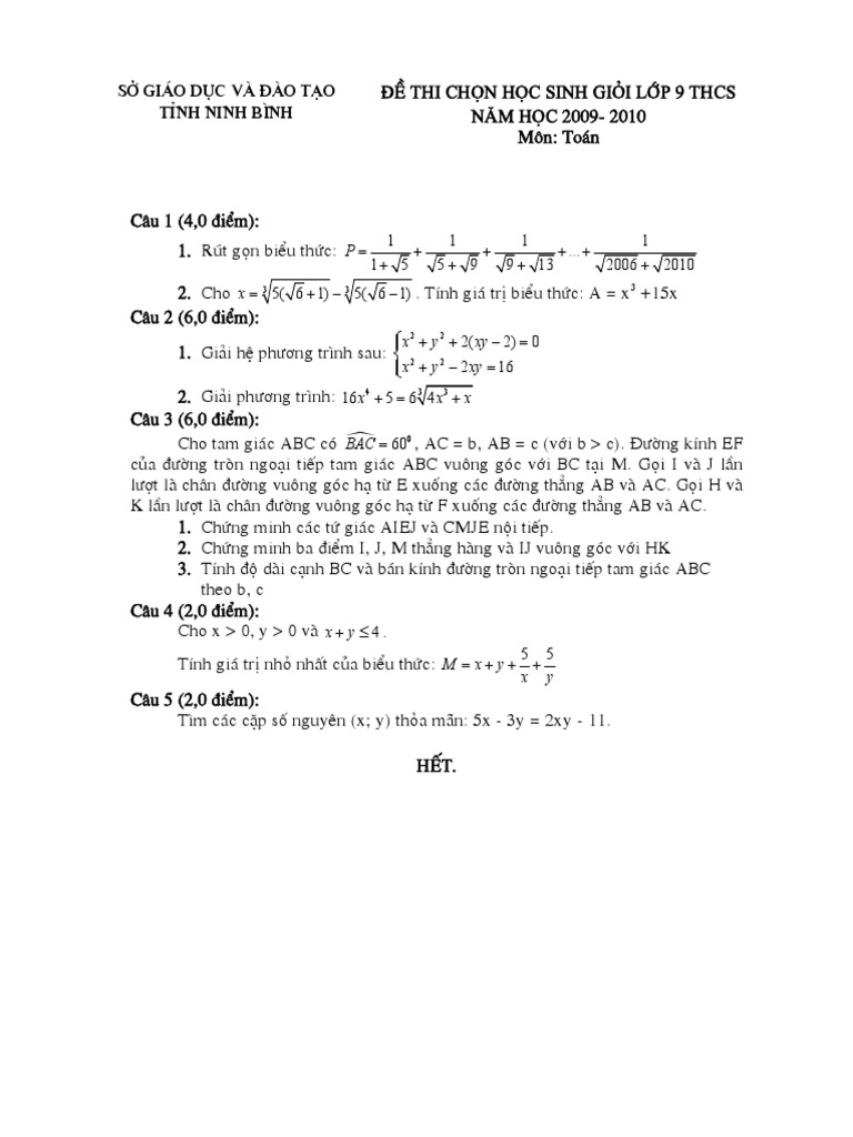 đề Thi Hsg Toan 9 Tỉnh Ninh Binh 2009 2010