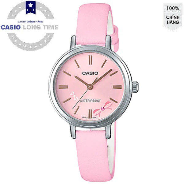 đồng Hồ Nữ Casio Ltp E146l 4a Day Da Thật Mau Hồng Họa Tiết Ruy Băng Tren Mặt Số Shopee Việt Nam
