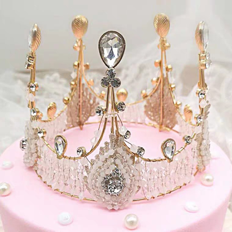 Banh Sinh Nhật Vương Miện Trang Tri Cong Chua Co Be Ngọc Trai Vương Miện Nữ