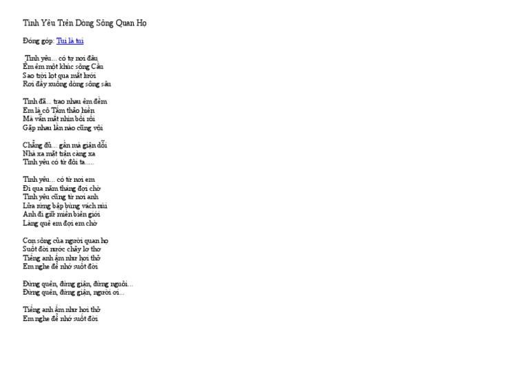 Tình yêu trên dòng sông quan họ karaoke hd nhạc sống thể loại. Tìm loi bai hat tinh yeu tren dong song quan ho thanh hoa nsnd ngay trên nhaccuatui. Tìm loi bai hat tinh yeu tren dong song quan ho thu hien nsnd ngay trên nhaccuatui. Anh thơ đăng thuật sáng tác.