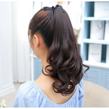 Toc Giả Cột Buộc Xoăn Han Quốc Nau Tối Gia Rẻ