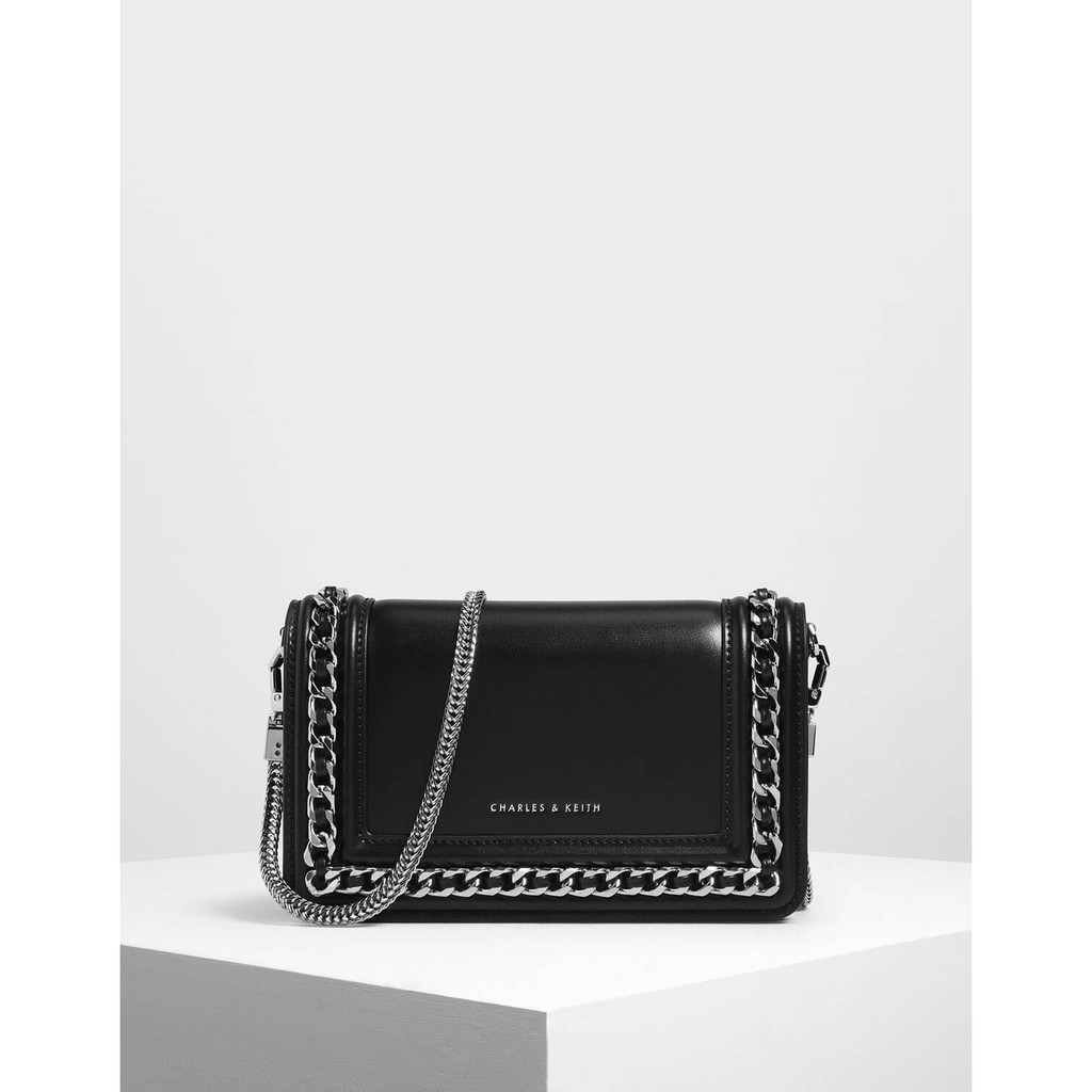 Mua Tui Charles Keith Chain Link Embossed Crossbody Bag Mau đen đeo Vai Chinh Hang Gia Tốt