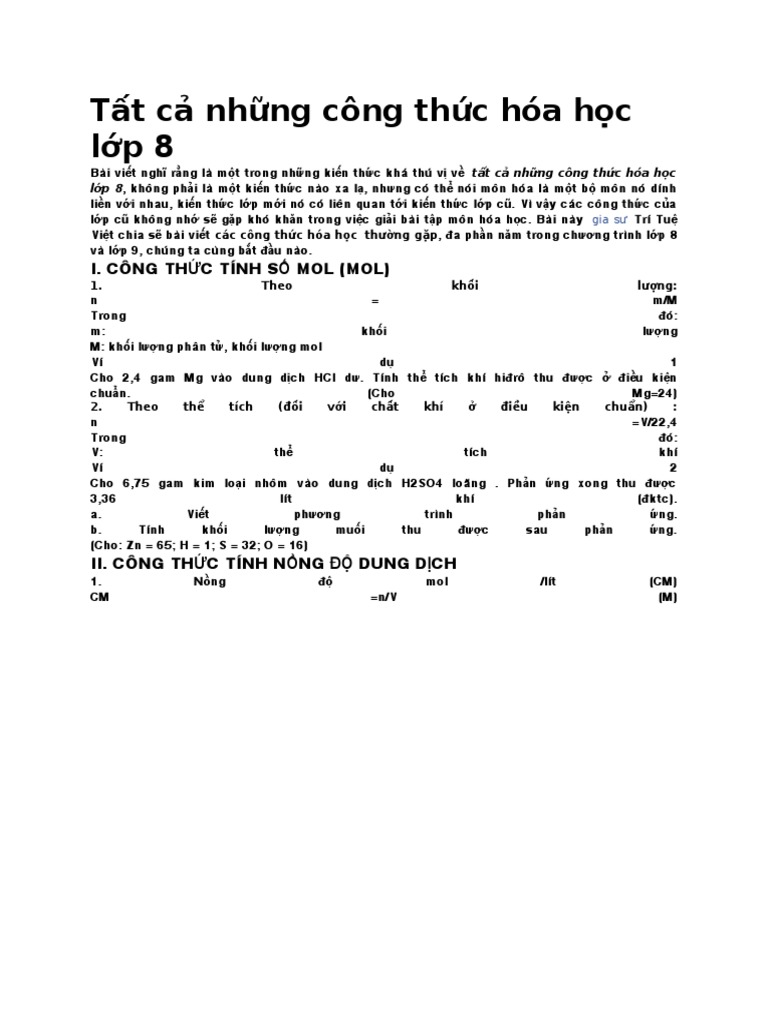 Tất Cả Những Cong Thức Hoa Học Lớp 8 Trung Tam Gia Sư Tri Tuệ Việt Trung Tam Gia Sư Tri Tuệ Việt