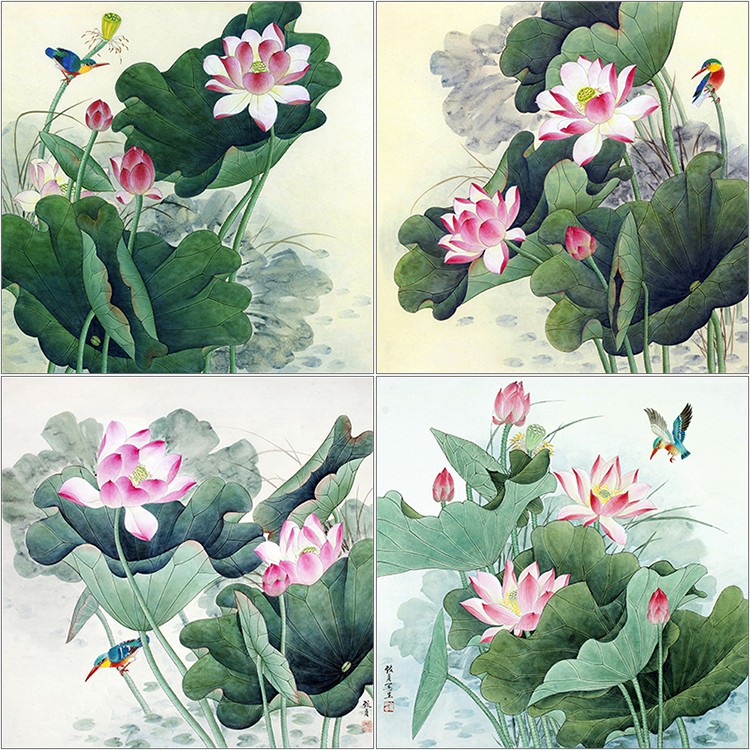 Tranh Vẽ To Mau Hinh Hoa Sen đẹp Mắt Phong Cach Trung Hoa Shopee Việt Nam