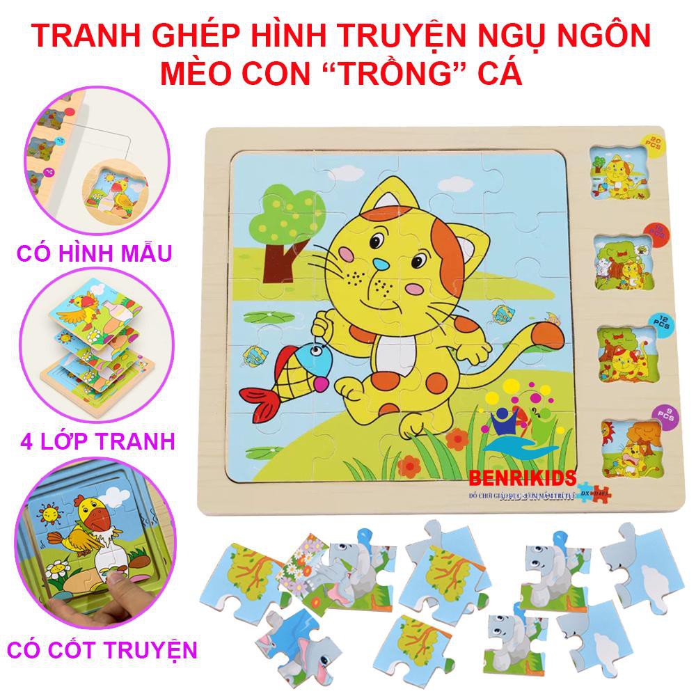 đồ Chơi Ghep Hinh Bộ Tranh Ghep Truyện Ngụ Ngon Meo Trồng Ca Bằng Gỗ Cho Be Shopee Việt Nam