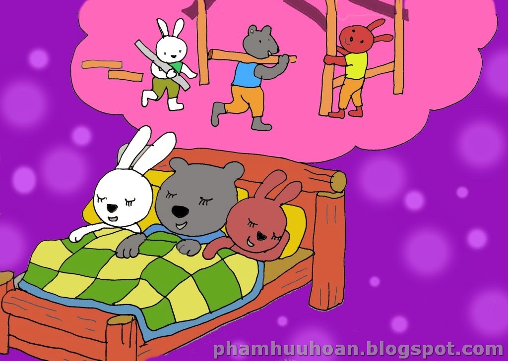 Gấu đen ăn xong thỏ trắng và bác gấu đen cùng đi ngủ.