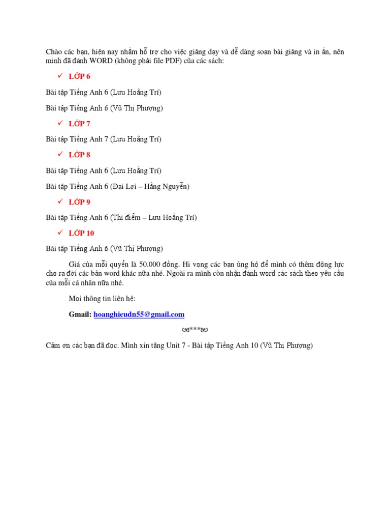 Bai Tập Tiếng Anh Sach Thi điểm Theo Từng Unit Lớp 7 8 9 Co đap