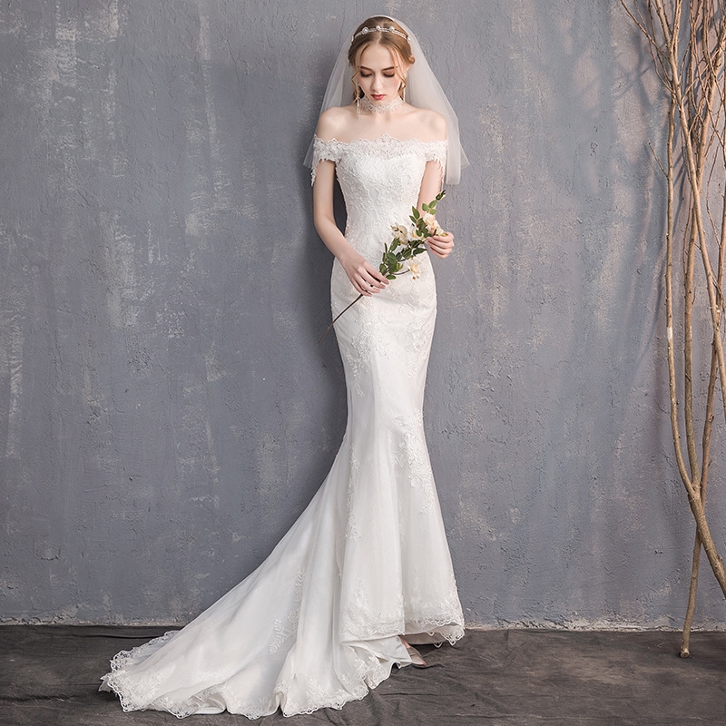 Vay Cưới Vai Ngang Tay Lỡ đắp Ren Dang đuoi Ca Kieu Sa