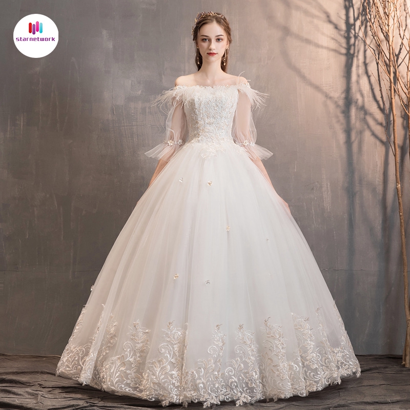 Vay Cưới 2020 Co Dau Mới Sang Trọng Sang Trọng Qi Mỏng Champagne Dai Tay Ao Cưới Chinh Shopee Việt Nam