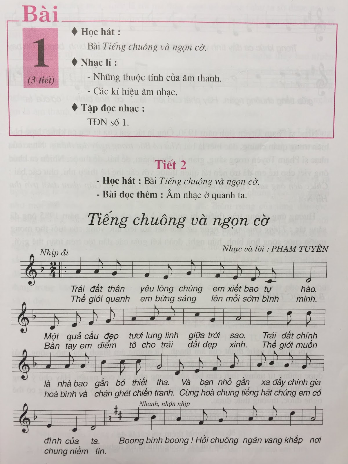 Trong tiết 2 các em đã đợc học bài hát tiếng chuông và ngọn cờ số chỉ nhịp nhịp.