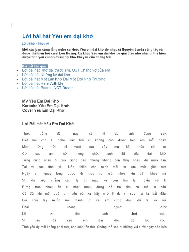Lời Bai Hat Yeu Em Dại Khờ Lyrics Yeu Em Dai Kho Mv Video Mp3 Yeu Em